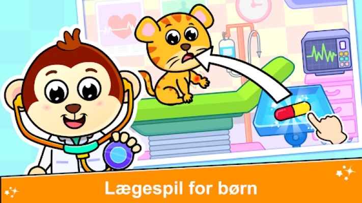 Dyk ned i Hospitalslæge Spil for Børn og oplev spændingen ved at være læge, ambulancechauffør og tandlæge. Hjælp søde dyr som køer, tigre og pandaer med at få den rette akutte lægehjælp. Et sjovt og lærerigt hospitalsspil for nysgerrige børn.
