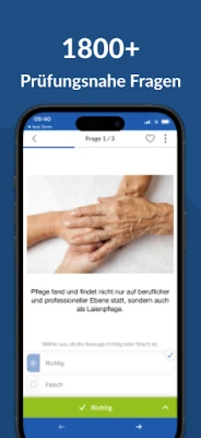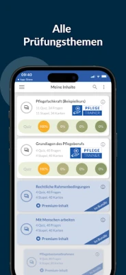 Står du over for vigtige eksamener inden for sygepleje og ønsker at sikre dig den bedst mulige forberedelse? Med Pflege Trainer får du et fleksibelt og yderst effektivt værktøj, der guider dig sikkert gennem din uddannelse. Uanset om du er under uddannelse til sygeplejerske, sygeplejeassistent, plejehjælper eller i specialistpleje, er denne app designet til at styrke din viden. Den er omhyggeligt tilpasset de nuværende tyske retningslinjer, herunder det anerkendte Pflegeberufegesetz (PflBG) og de aktuelle rammeplaner for plejeuddannelser, hvilket sikrer, at du altid arbejder med relevant og opdateret indhold. Gør dig klar til at mestre alle facetter af den generalistiske sygeplejeuddannelse med målrettet træning lige ved hånden.