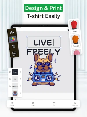 Slip din kreativitet løs og forvandl dine visioner til håndgribelige designs med T Shirt Design Mockup Maker. Uanset om du er en spirende designer, en hobbyist med passion for personlige projekter, eller en lille virksomhedsejer, der ønsker at sætte dit præg, er denne app dit ideelle værktøj. Den er skabt til at hjælpe dig med at realisere en bred vifte af unikke beklædningsgenstande og merchandise, fra iøjnefaldende T-shirts og detaljerede 3D-basketballtrøjer til specialdesignede kaffekopper og hættetrøjer. Oplev en problemfri proces, der bringer dine idéer til live uden forudgående designekspertise.